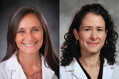 Duke University School of Medicine Dean Mary E. Klotman, MD, talks with co-founders of Duke’s LATIN-19 initiative Viviana S.